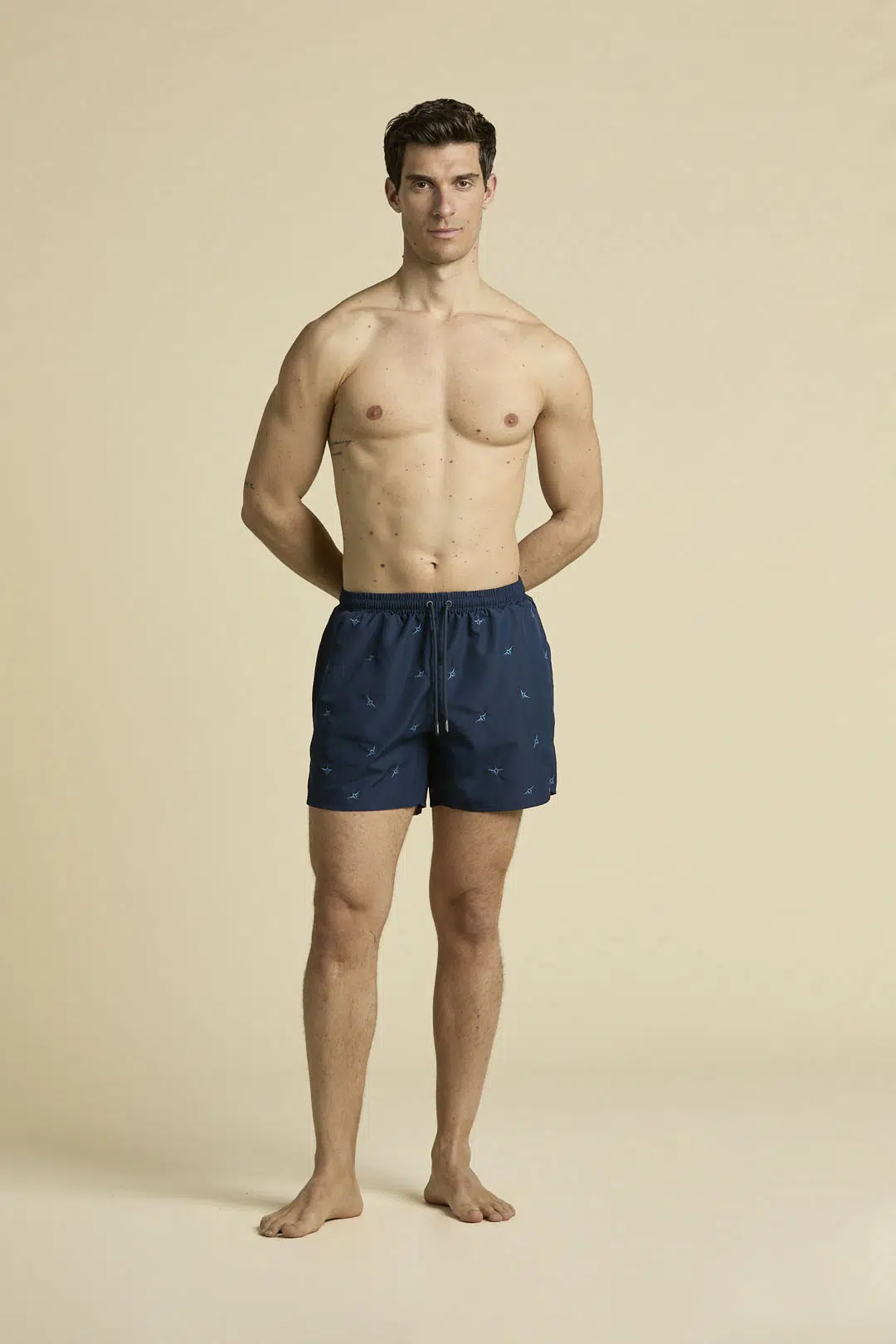 Ein lebhaftes und originelles Allover-Stickmuster prägt diese Herren-Badehose aus einem leichten, schnell trocknenden Stoff, der an heißen Sommertagen maximalen Komfort garantiert. Der elastische Bund mit Kordelzug sowie die praktischen Seiten- und Gesässtaschen machen sie zu einem funktionalen und vielseitigen Modell. Die ideale Wahl für alle, die am Strand oder im Pool nicht unbemerkt bleiben möchten.