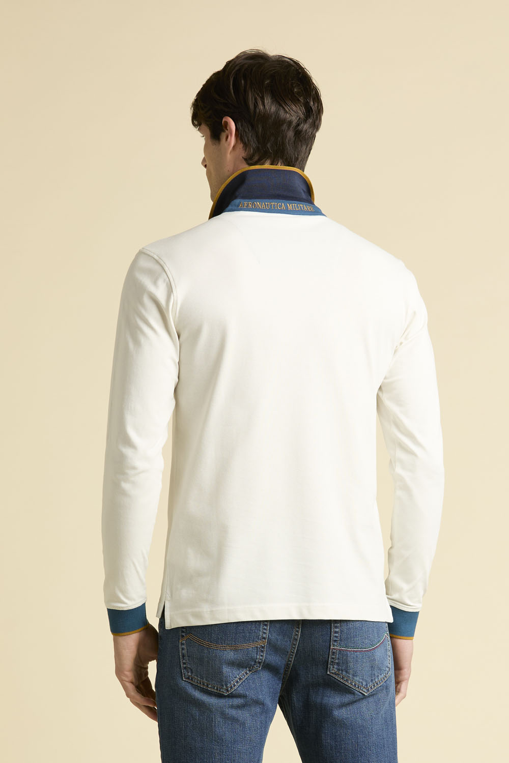 Ein leuchtendes Farbblockdesign unterstreicht die feierliche Stickerei auf der Brust und macht dieses langärmelige Poloshirt zu einem Kleidungsstück mit einer starken und unverwechselbaren Identität. Es besteht aus einer Mischung aus Piqué und Baumwollstretchjersey und verbindet Struktur und Weichheit in einem perfekten Gleichgewicht. Als Hommage an die Staffel Frecce Tricolori zeichnet sich dieses Poloshirt durch Stickereien auf der Brust und der Rückseite des Kragens aus, während kontrastierende Details wie der gerippte Kragen und die Manschetten seinen dynamischen und sportlichen Charakter unterstreichen.