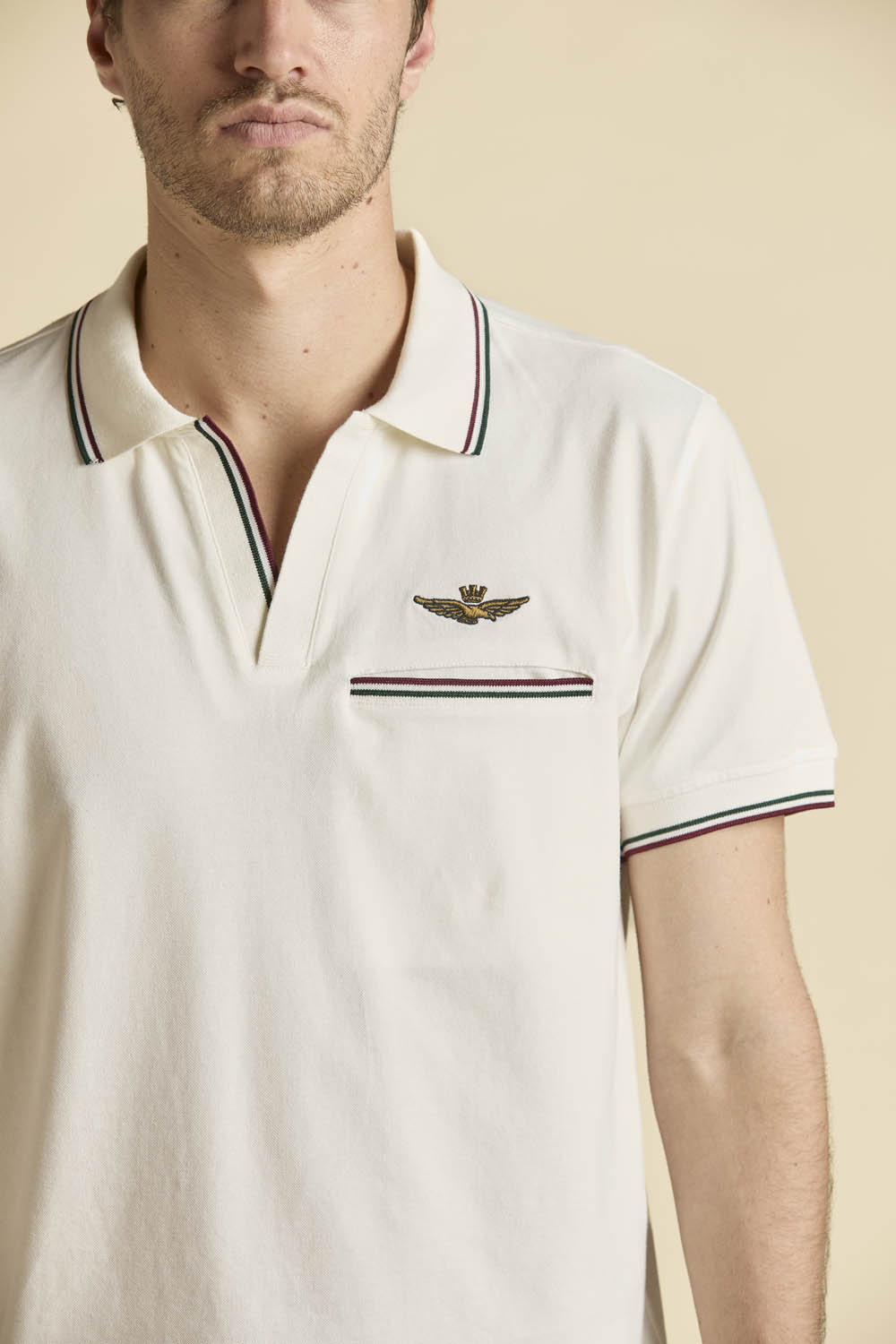 Aeronautica Militare Polo mit offenem Kragen und Tasche