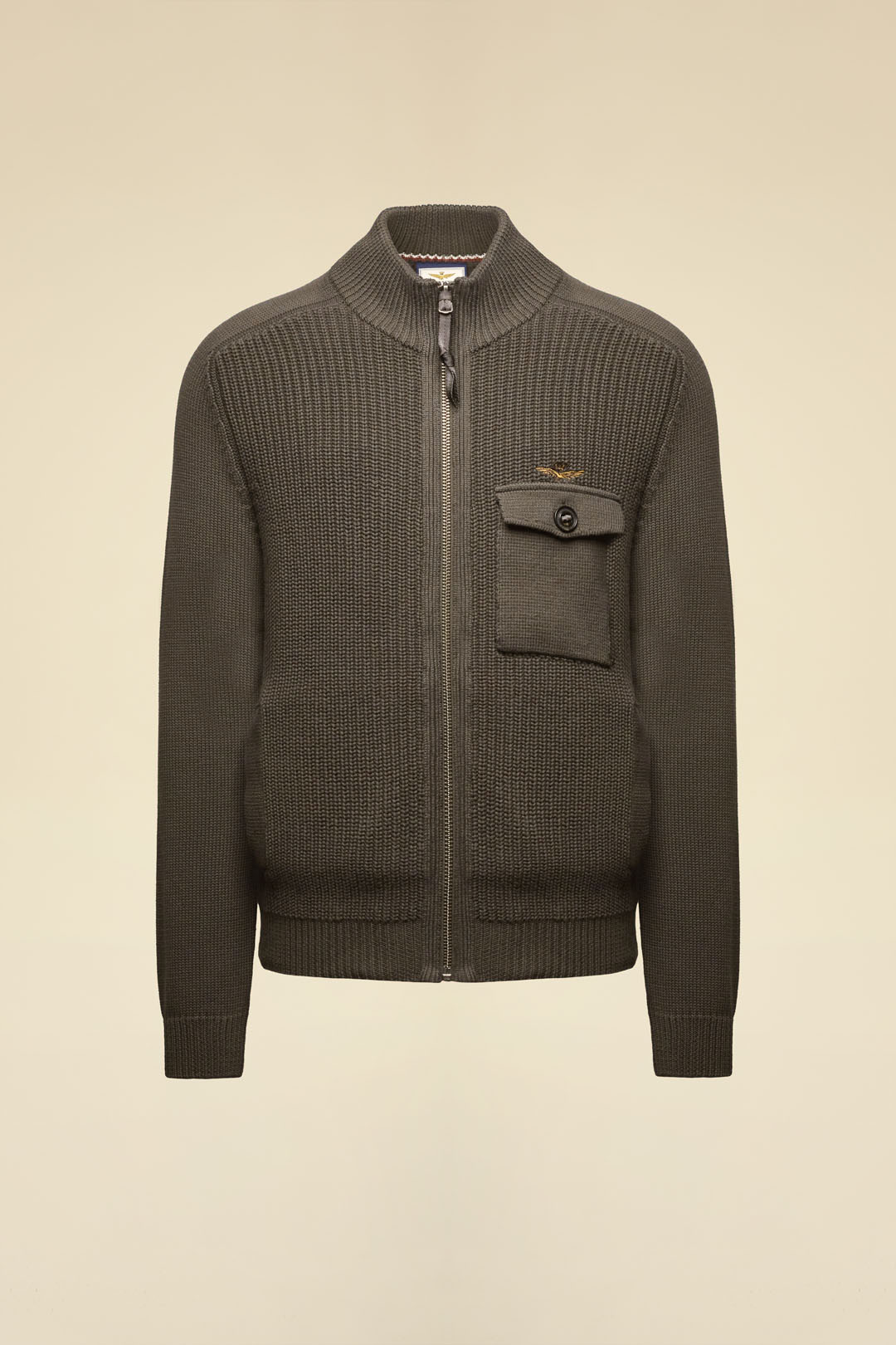 Pullover aus Baumwolle mit durchgehendem Reissverschluss im Fisherman’s Rib-Stil von Aeronautica Militare