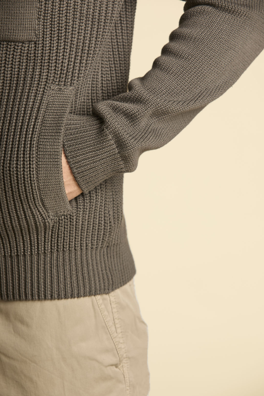 Dick, gemütlich und charaktervoll: Dieser Pullover mit durchgehendem Reissverschluss ist aus garngefärbter Baumwolle gefertigt und mit einem raffinierten Fischerrippenmuster versehen, das ihm eine edle, strukturierte Haptik verleiht. Mit der Struktur einer Jacke und dem Tragekomfort eines Strickpullovers verfügt er über eine Brusttasche mit Patte und dezente Stickereien für ein unverwechselbares Kleidungsstück für jeden Tag.