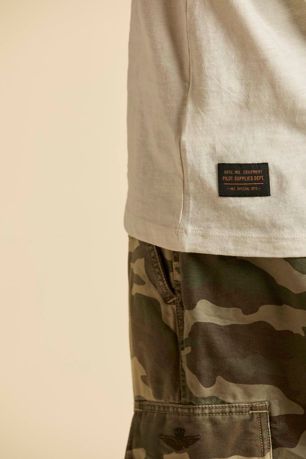 - Logo-Etikett am hinteren Saum