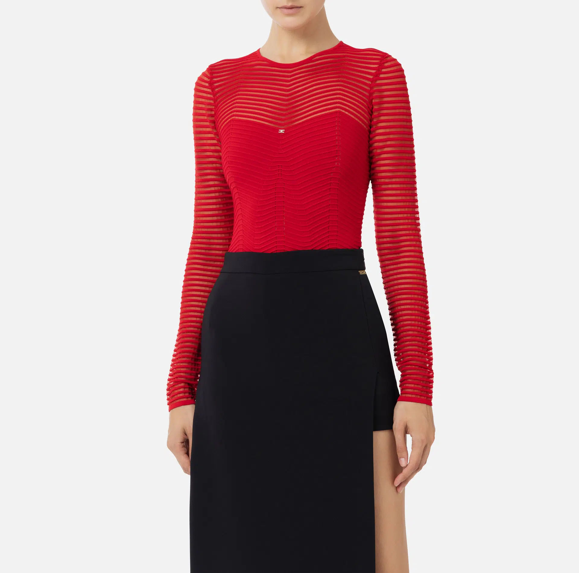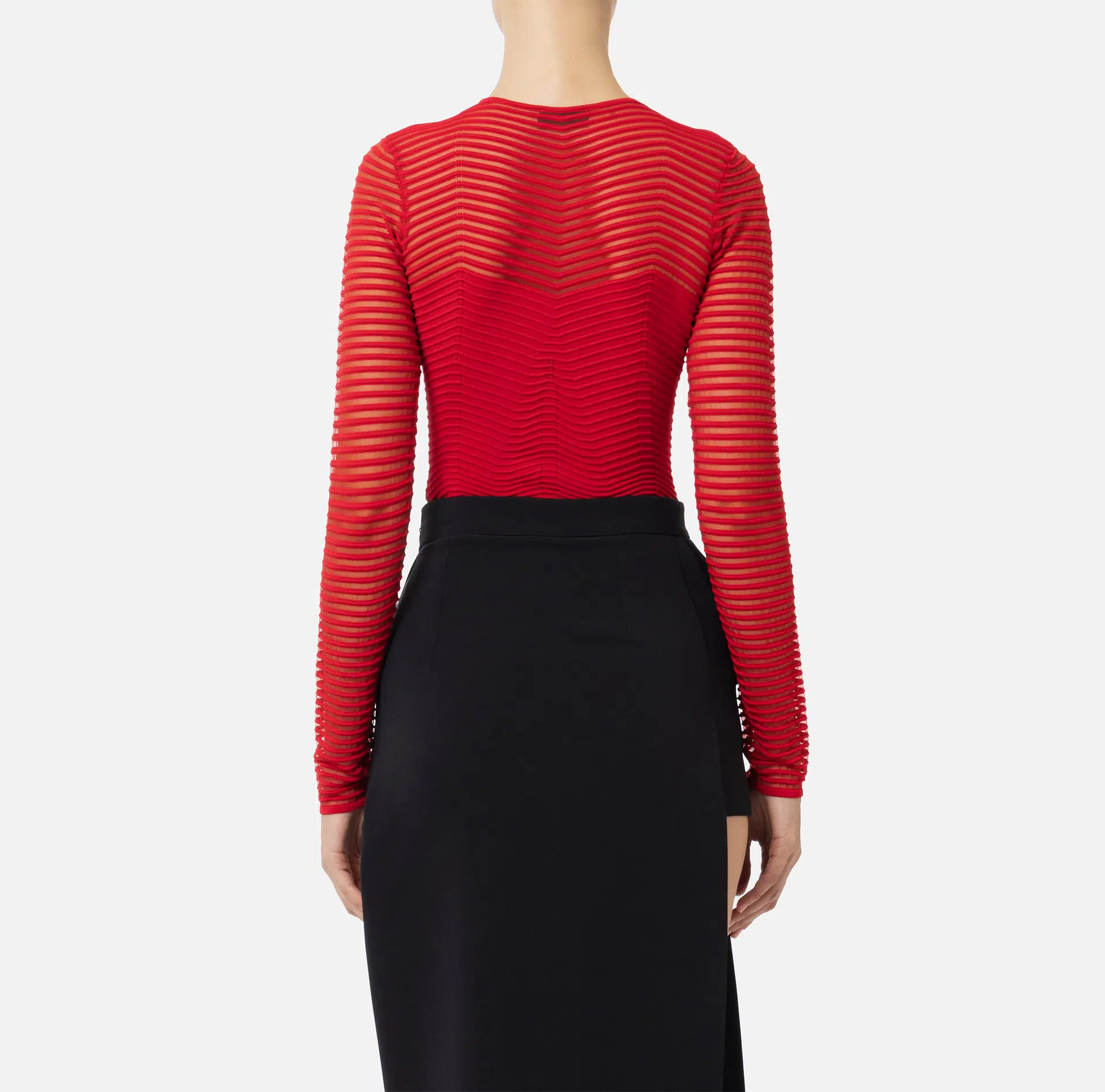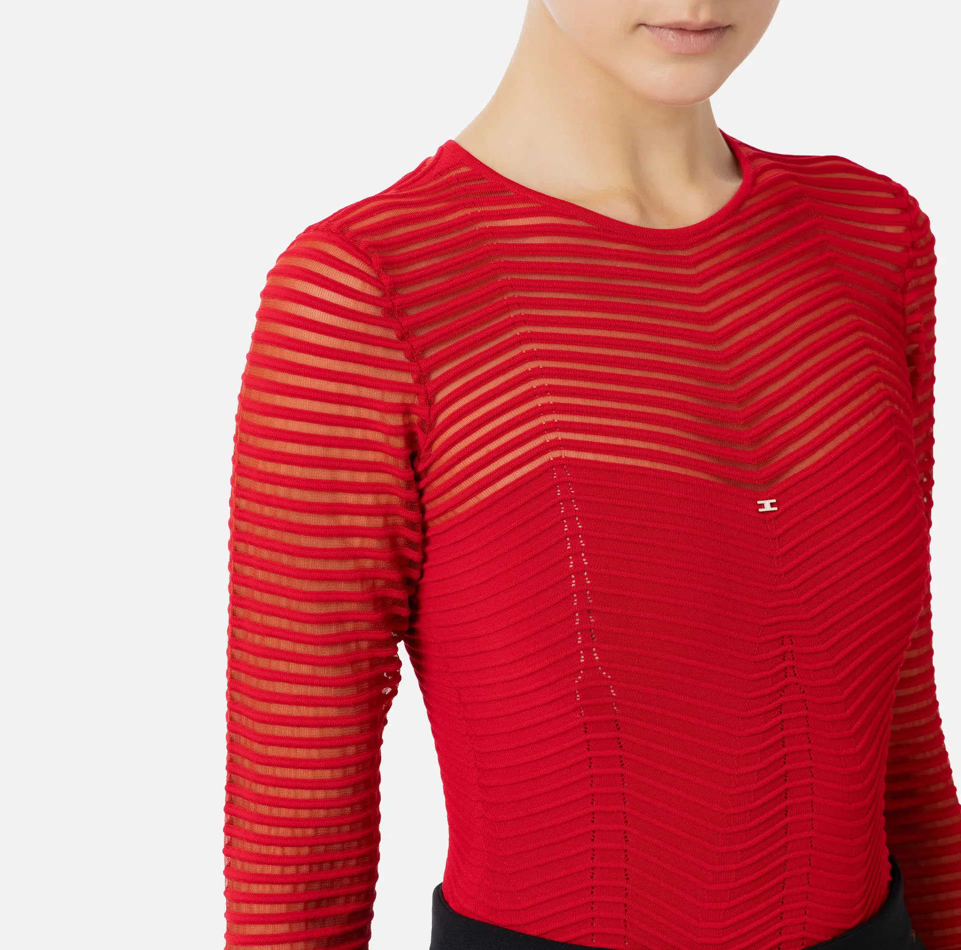Body aus Viskose mit dreidimensionalem Chevron-Motiv im Wechsel mit einem Netzmuster. Mit langen, transparenten Ärmeln und Rundhalsausschnitt.