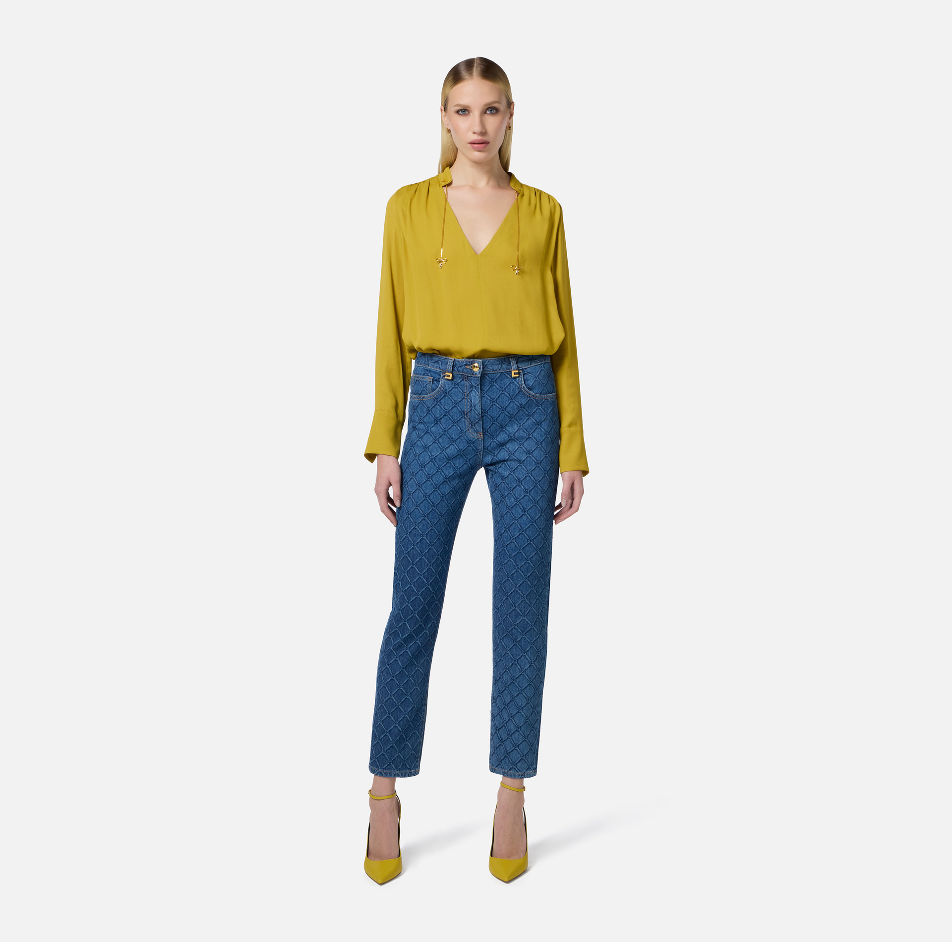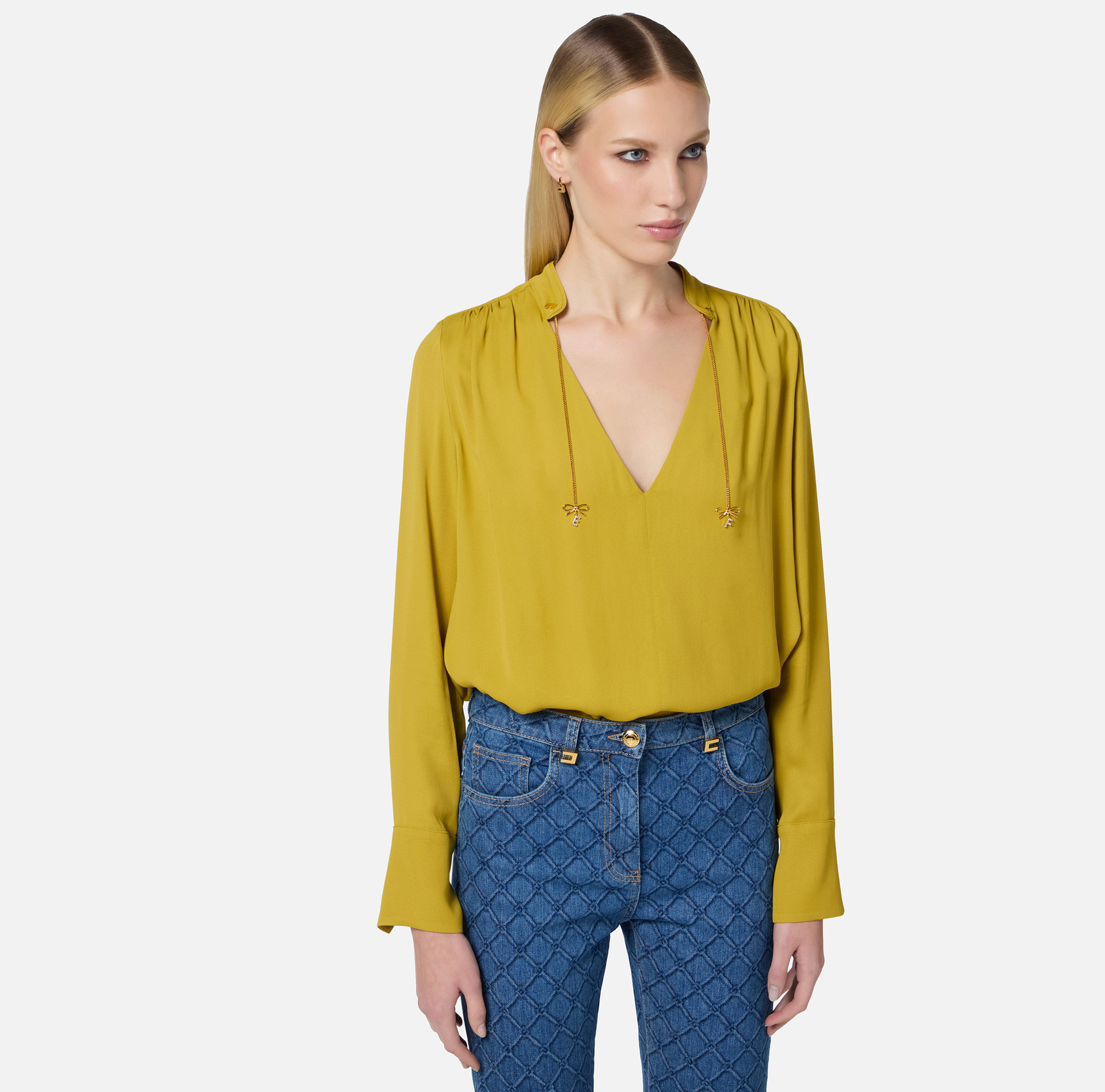 Hemdbluse aus Georgette mit Charm-Anhängern und Logo von Elisabetta Franchi