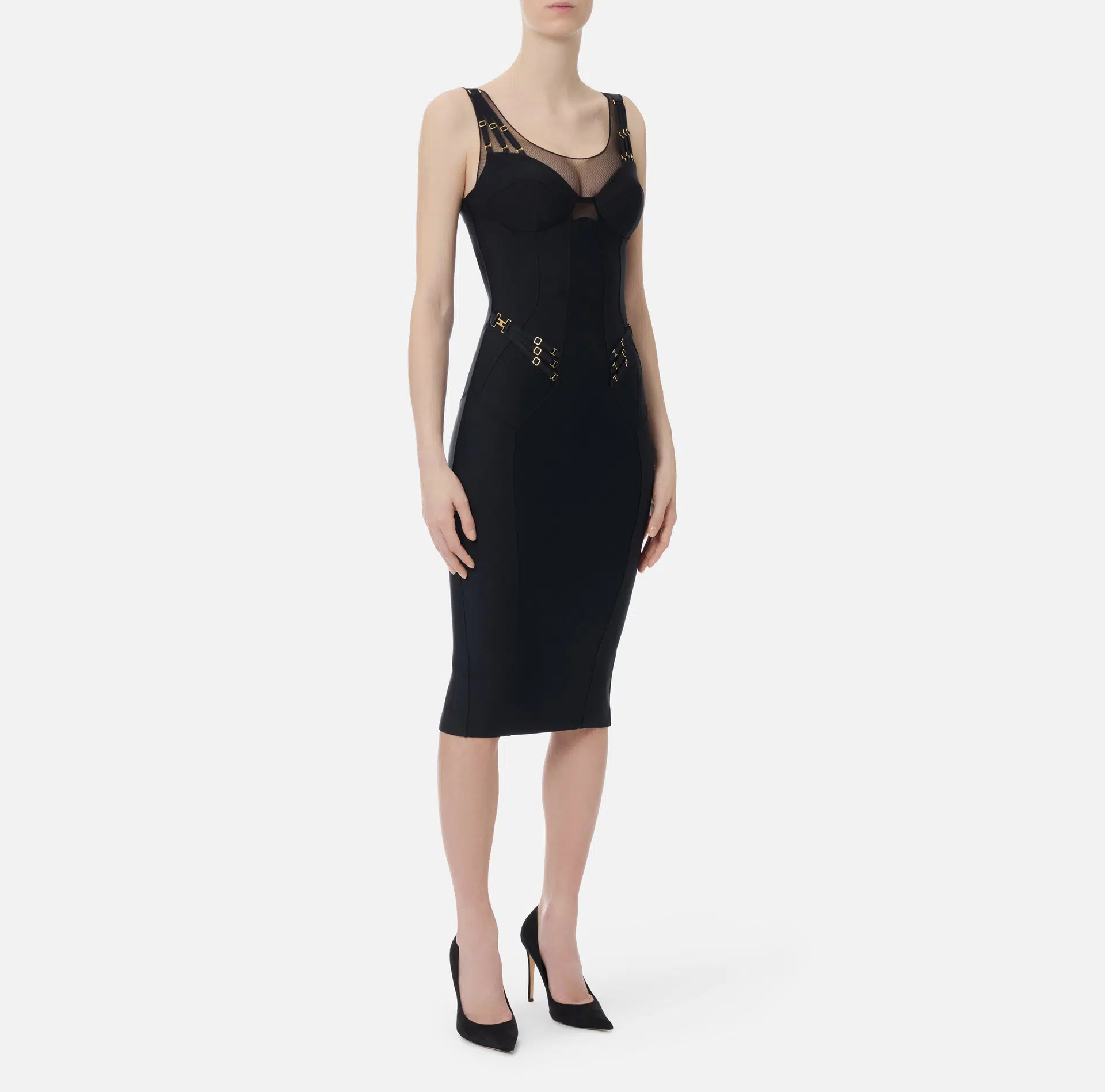 Kleid aus leichtem Jersey und Tüll mit elastischen Bändern von Elisabetta Franchi