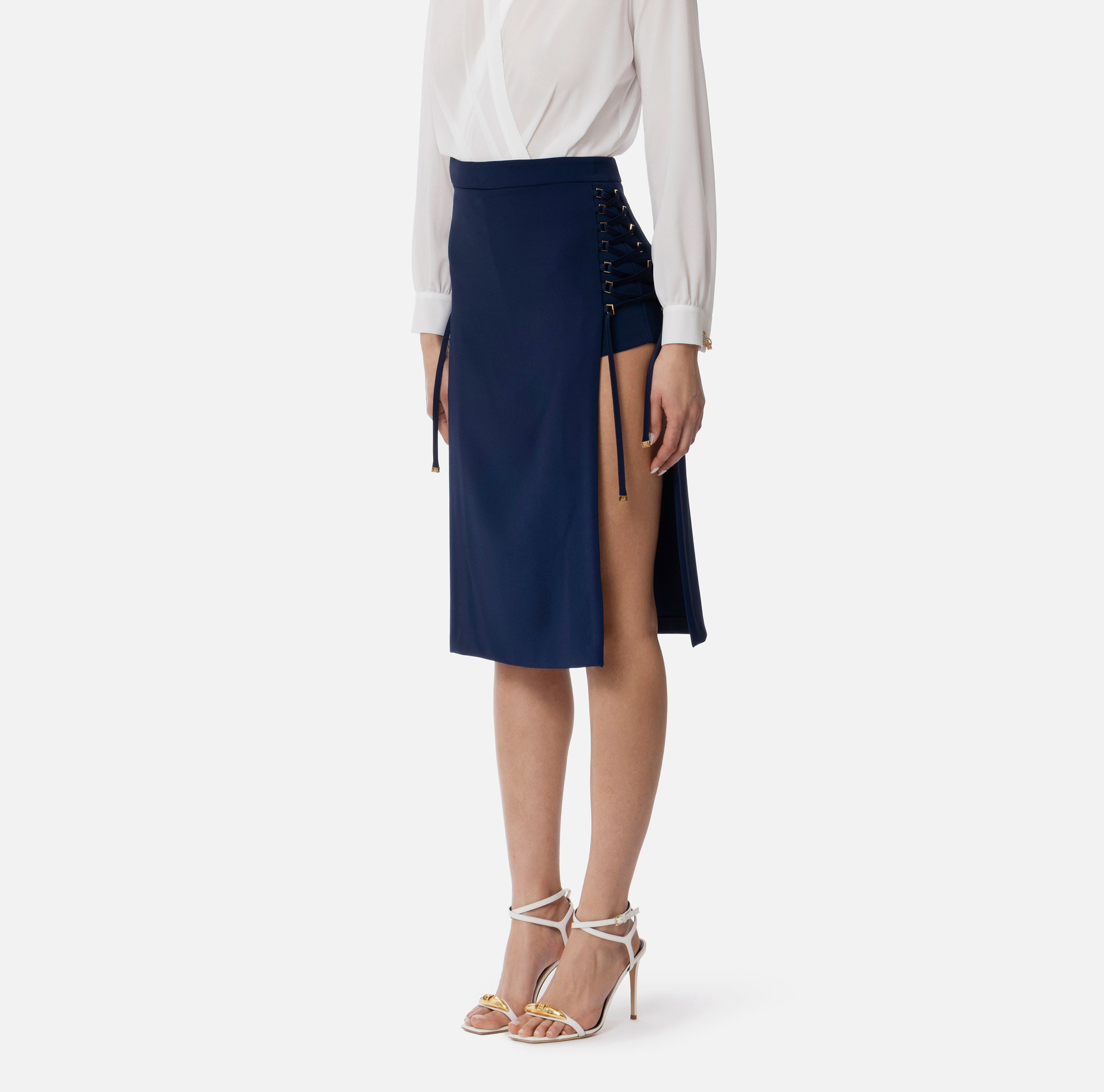 Elisabetta Franchi Rock aus leichtem, doppellagigem Crêpe mit Kreuzschnürmotiv