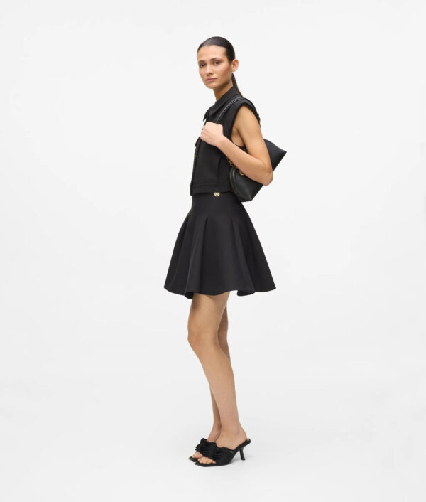Ein ausgestellter Minirock mit voluminösen Falten, die bei jedem Schritt mitschwingen. Der verdeckte Reissverschluss und der goldene Autograph-Anhänger verleihen dieser verspielten Silhouette eine elegante Note.