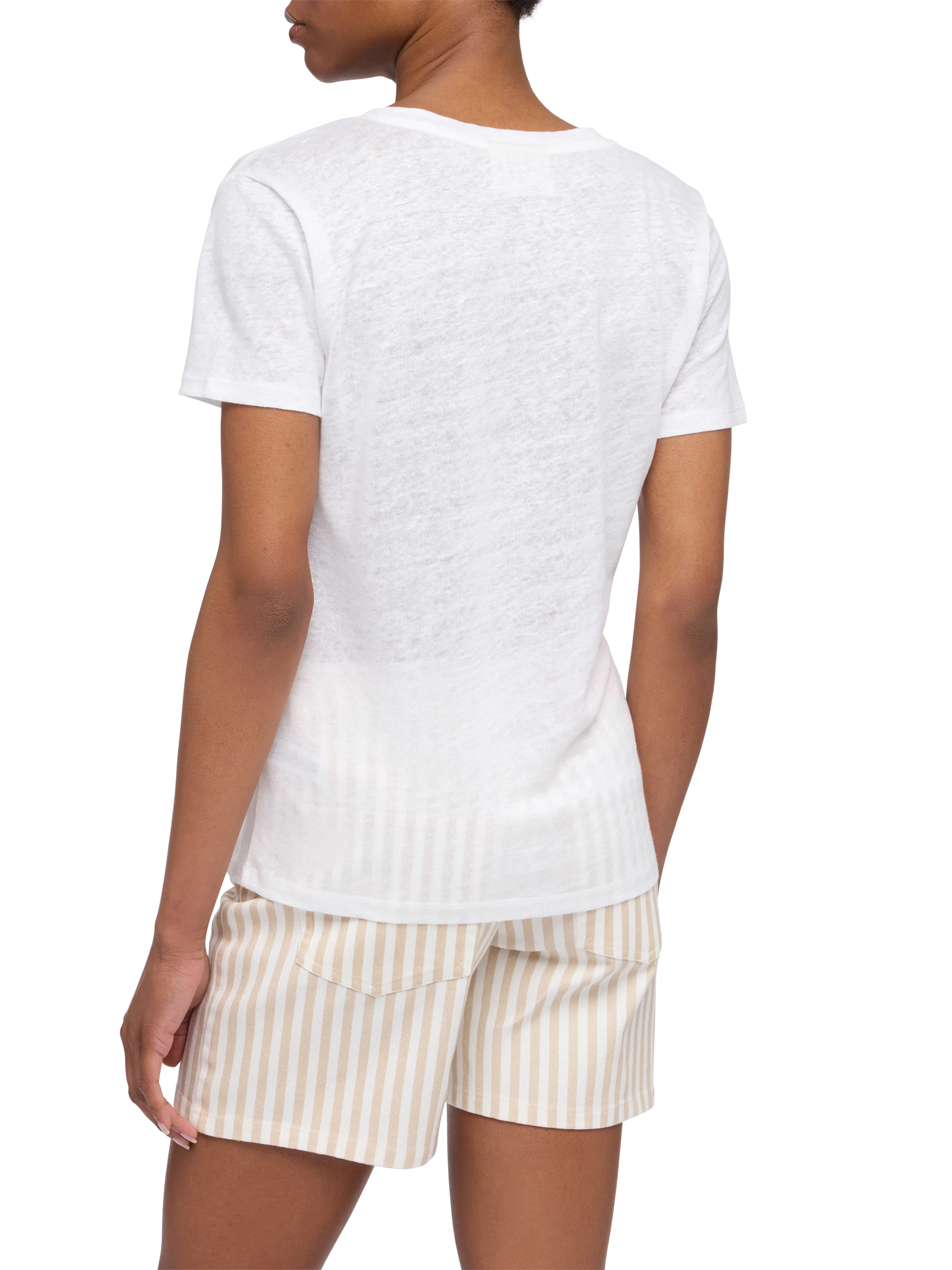 Dieses T-Shirt mit V-Ausschnitt und lockerer, bequemer Silhouette ist aus leichtem Leinenjersey gefertigt und verfügt über den unverwechselbares gesticktes Saint Barth-Logo über dem Herzen.